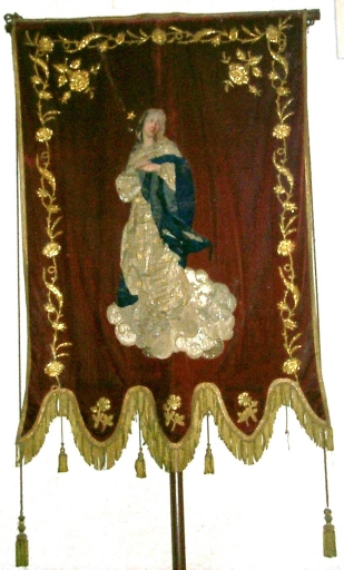 Bannière de procession de paroisse : saint André, Immaculée Conception,