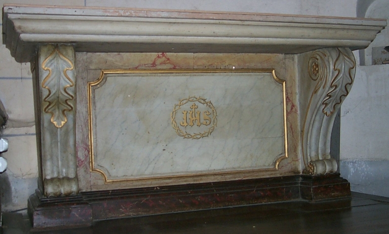 Autel secondaire sud : autel, tabernacle, 2 gradins et 1 degré d'autel,