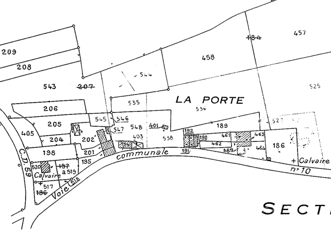 Extrait du cadastre de 1986 ; partie nord du hameauImmatriculation
