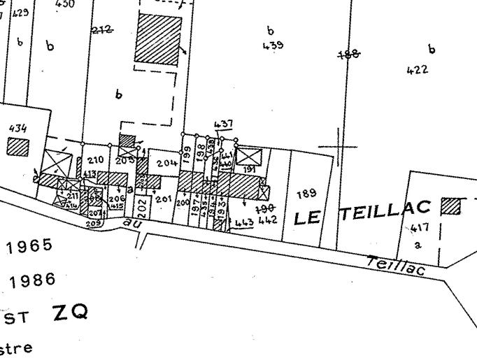 Extrait du cadastre de 1986 : le TeillacImmatriculation