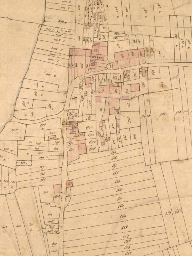 Vue de situation sur le cadastre de 1831 : alignement au centre, en haut de l'imageImmatriculation