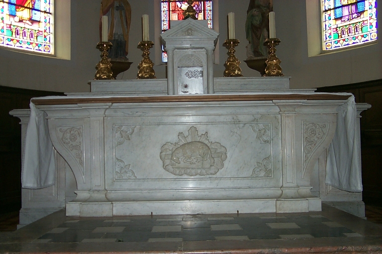 Ensemble du maître-autel : 3 degrés d'autel, autel, 2 gradins d'autel, tabernacle,