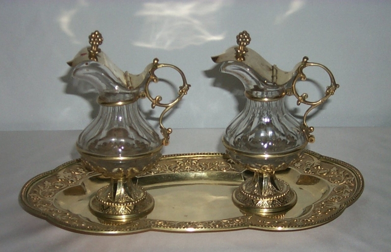 Chapelle : calice, patène, 2 burettes, plateau à burettes,