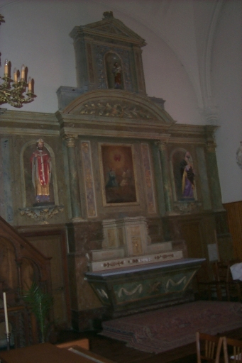 Ensemble de l'autel du Saint Sacrement : autel, retable, tabernacle, 2 gradins, 3 degrés d'autel,