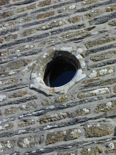 Mur sud, détail, occulus formé de remplois de fenestrages anciensImmatriculation