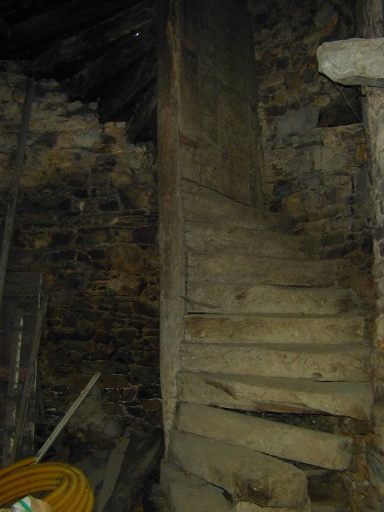 Grange, escalier de bois donnant accès au grenierImmatriculation