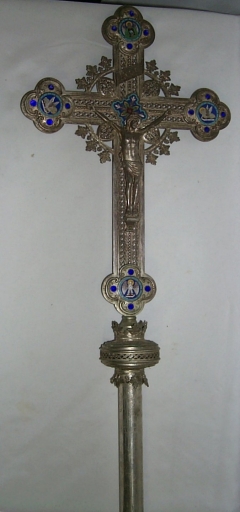 Ensemble de 2 croix de procession avec leur hampe,