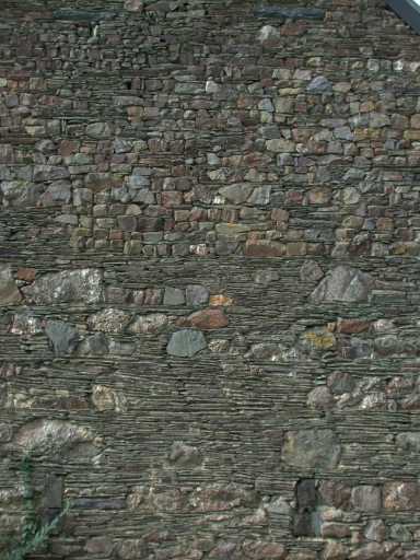 Mise en oeuvre des moellons, schistes, grès et blocs de poudingue, sur le pignon estImmatriculation