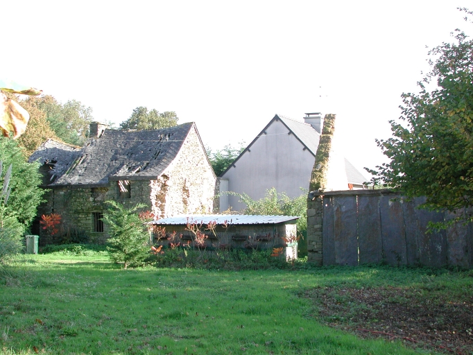 Ancien logis et grange à grands palis de schiste à droite sur l'image