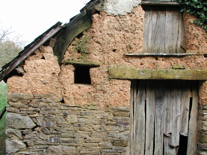 Détail : petite dépendance partiellement en terre laissant apparaitre une charpente en cruckImmatriculation