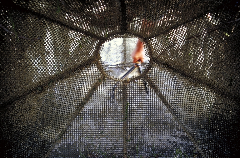 Détail : la nasse où l'on récupère le poissonImmatriculation