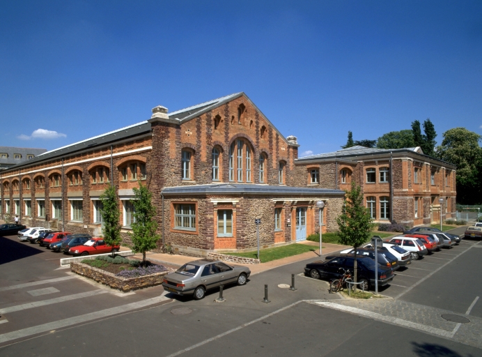 Vue générale de la halle Jobbé-Duval construite en 1883, abritant les ateliers de reliure, de vernissage, de pliage et le magasin de composition.Immatriculation