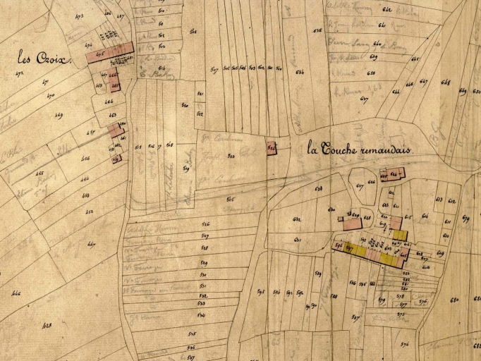 Vue de situation sur le cadastre de 1831 ; alignement en haut à gauche de l'imageImmatriculation