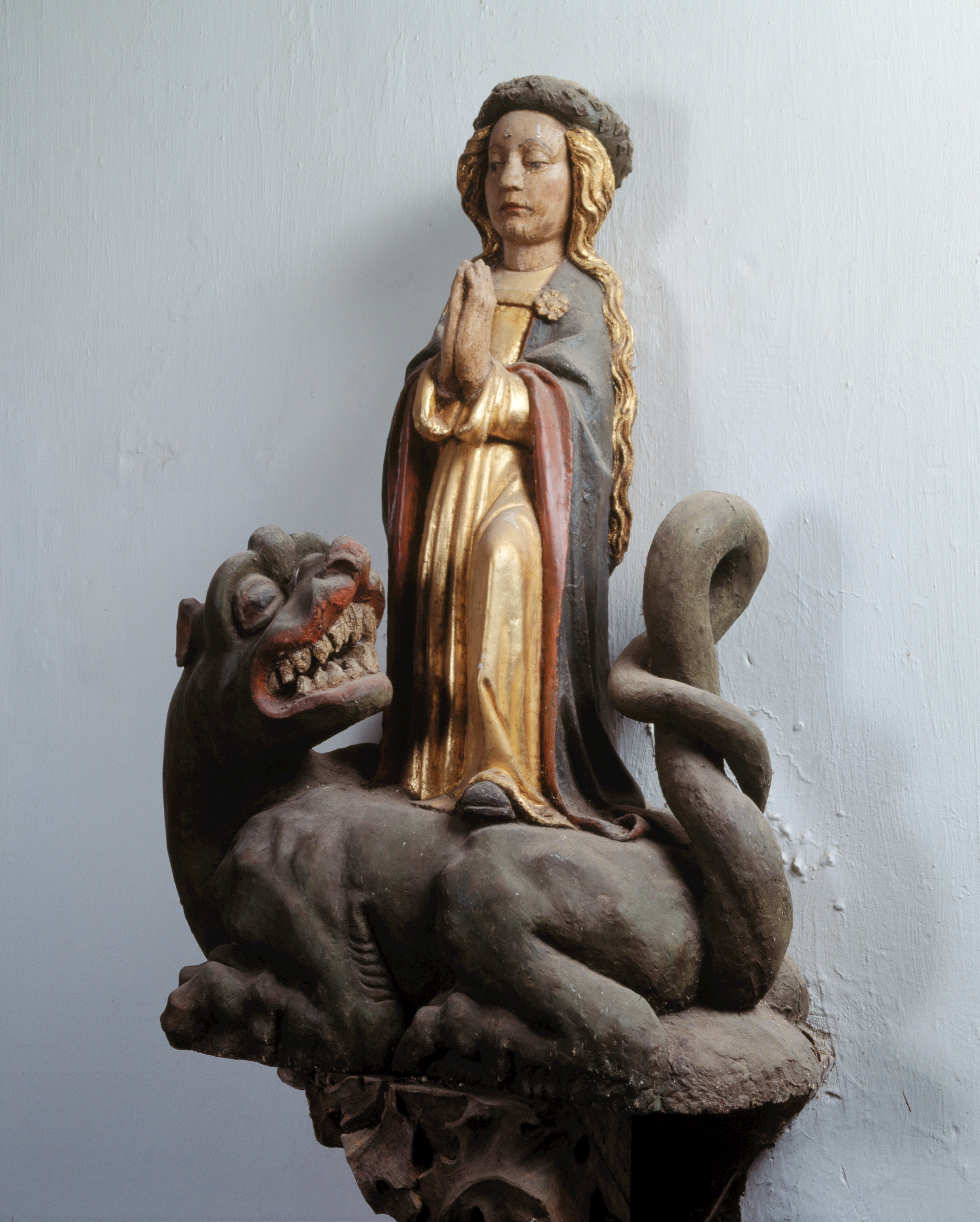 Statue (d'applique, demi-nature) : sainte Marguerite dite sainte Marguerite issant du dragon, chapelle Saint-Yves (Lignol),