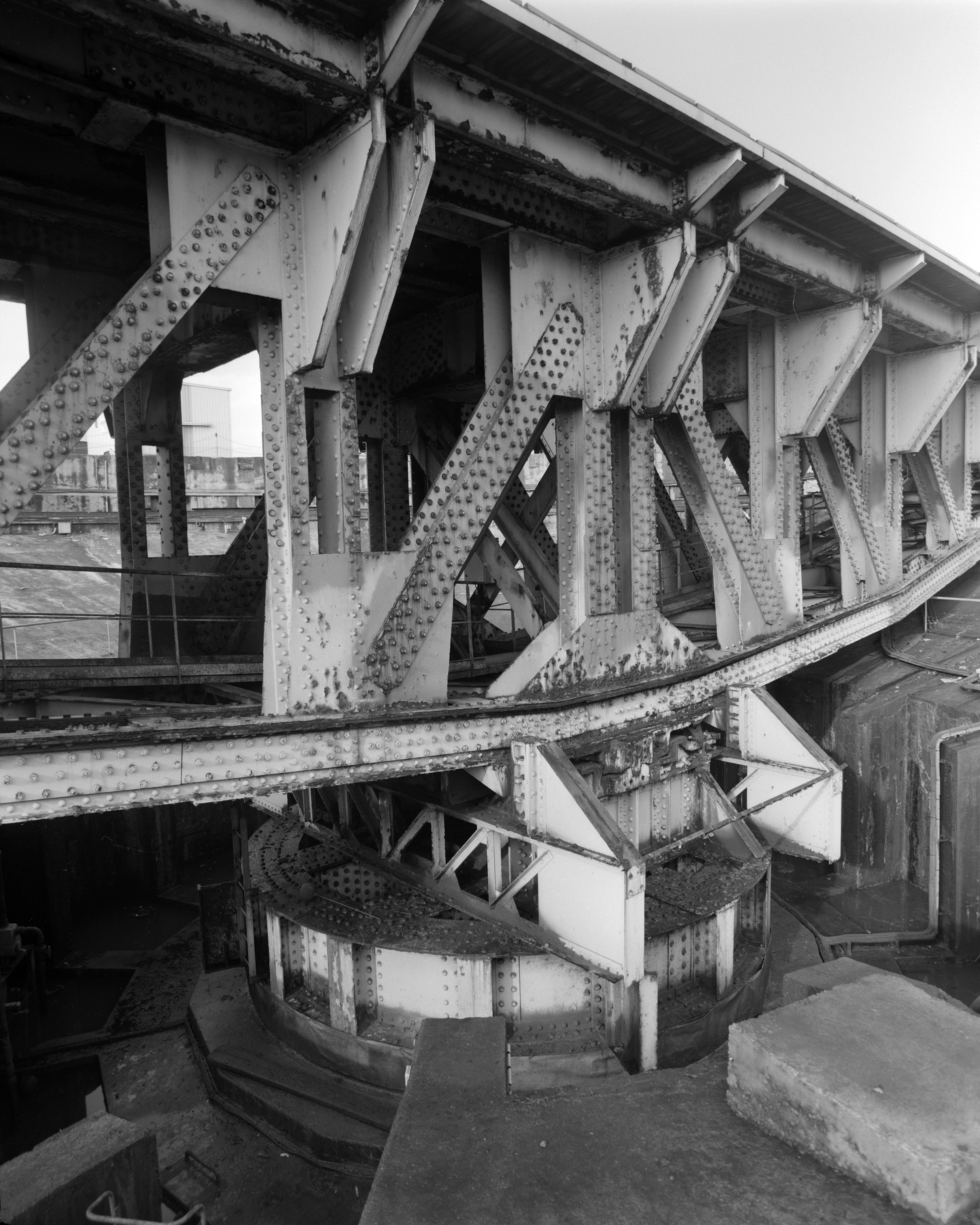 Vue de détail du pont basculant et tournant dans sa fosse bétonné en 2000 : axe centralImmatriculation