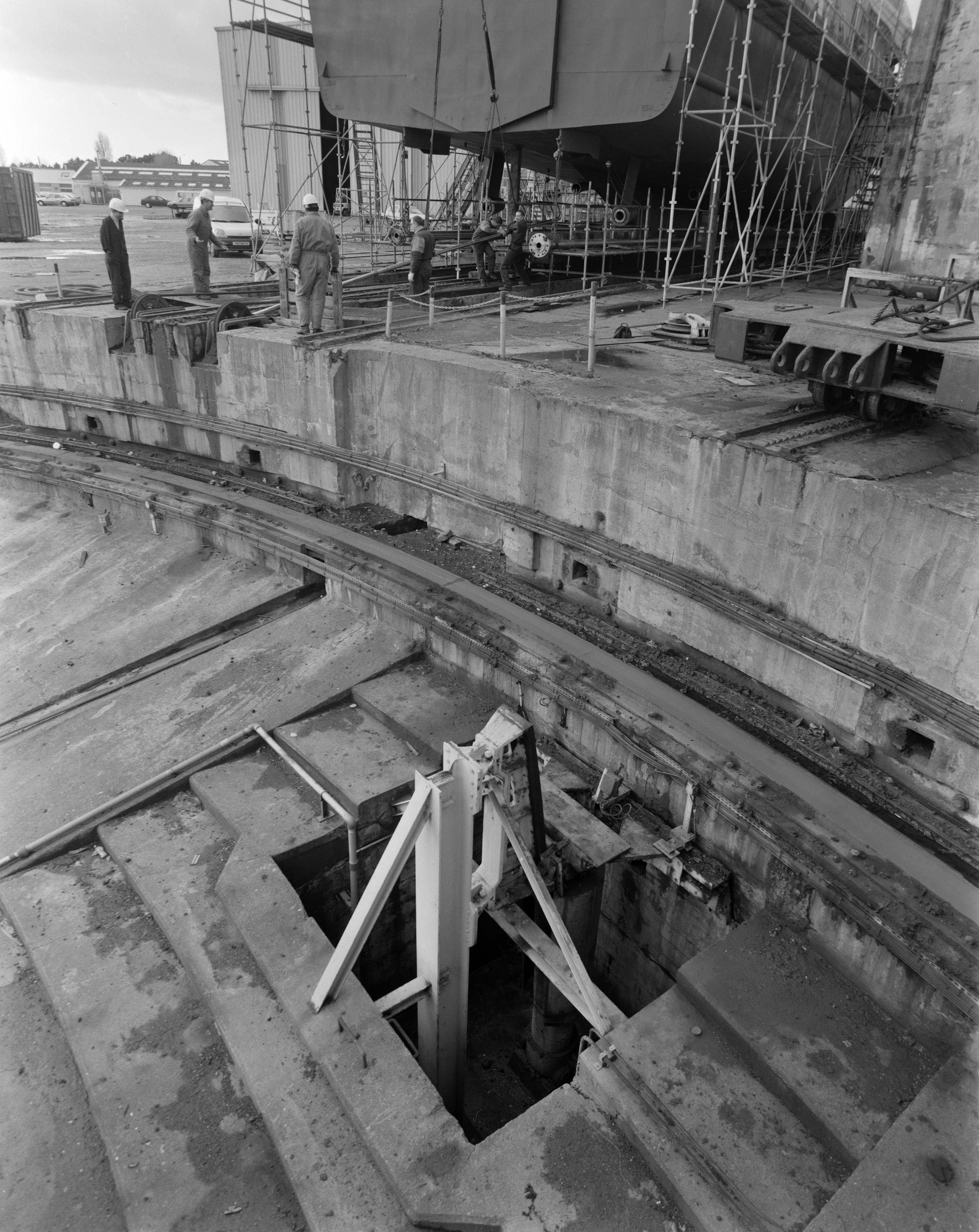 Slipway et cales de construction et de réparation navale, actuellement bassin de décantation, aire de réparation navale (Lorient),