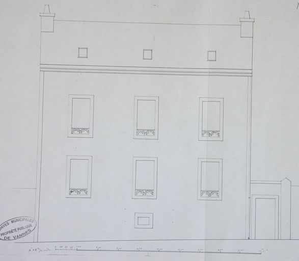 Elévation sur rue de la maison de M. Fontaine, 1879. AM Vannes.Immatriculation