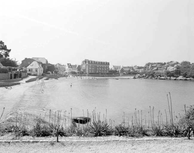 Vue d'ensemble de la plage saint-Guirec de Ploumanac'h vers l'hôtel BeausiteImmatriculation