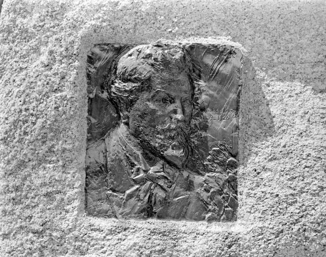 Détail du médaillon d'Anatole Le Braz, par Armel-Beaufils.Immatriculation