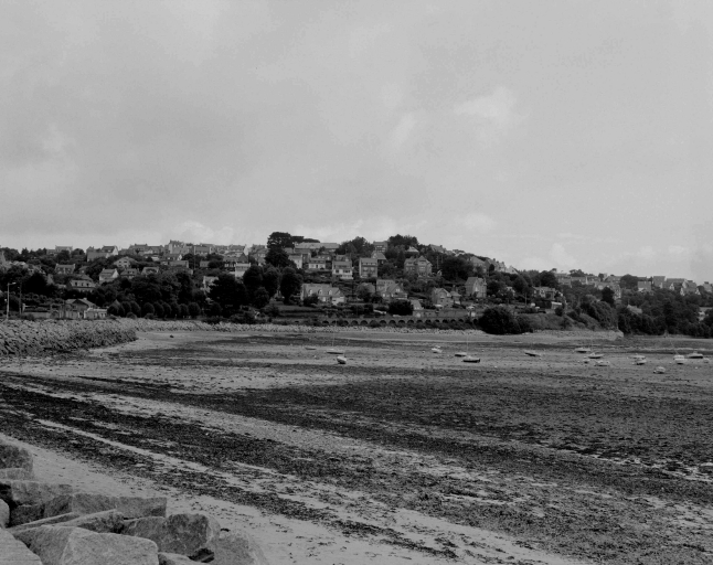 Passage de la route de la corniche le long de la grève à Perros-Guirec (boulevard de la mer).Immatriculation