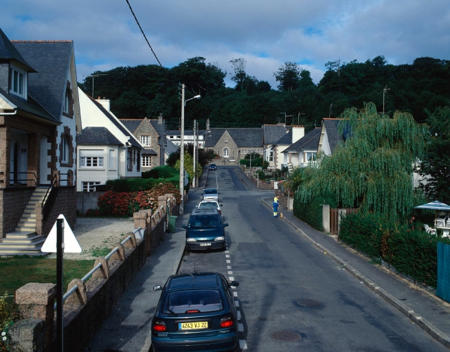 Lotissement HLM et chapelle du port édifiée à partir de 1957 par l'architecte Jean Pierre Le Meur. Vue vers l'ouestImmatriculation