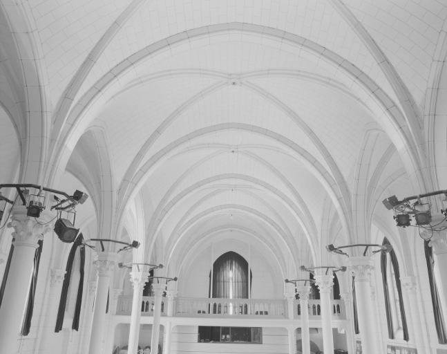 Vue de détail du couvrement de la chapelle.Immatriculation