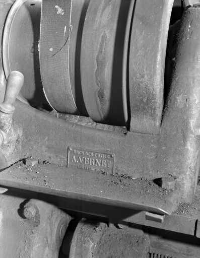 Détail de la plaque du constructeur : Machines-outils - A. Vernet - constructeur.Immatriculation