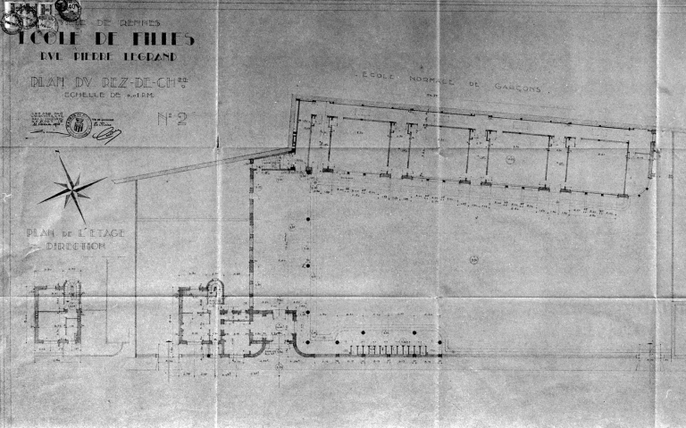 Plan du rez-de-chausée, dessin, 1934, par Yves Lemoine (A. C. Rennes ; 2 Fi 877)Immatriculation