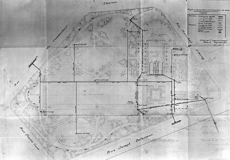 Square de la Touche, plan du réseau hydrolique, par Winter ingénieur horticole (A. C. Rennes : 5 Fi 117)Immatriculation