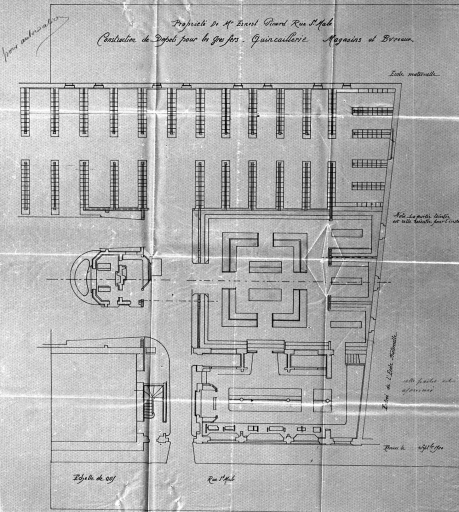 Construction de dépôt pour les gros fers, quincaillerie, magasins et bureaux. Plan, 1900 (A. C. Rennes)Immatriculation