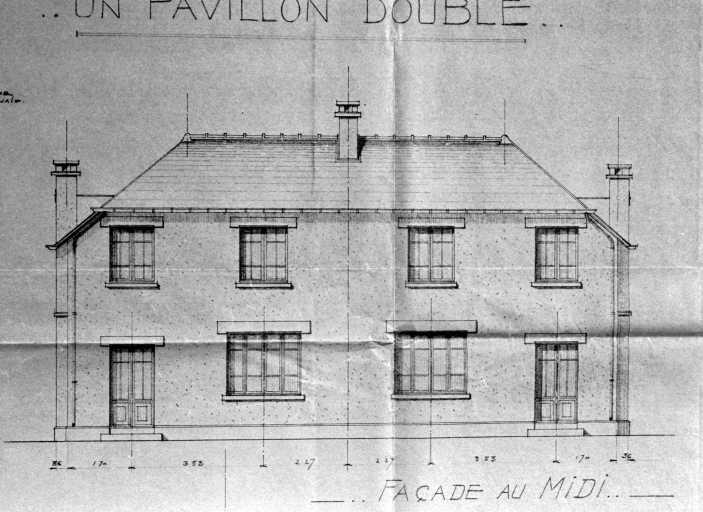 La cité Saint-Martin. Pavillon double. Façade au midi, par Testard du Cosquer, 1937 (A. C. Rennes)Immatriculation