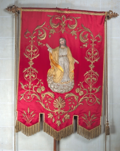 Bannière de procession paroissiale : Assomption, saint Pierre,