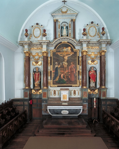 Ensemble du maître-autel : autel, tabernacle, retable, 2 gradins d'autel, 3 degrés d'autel,