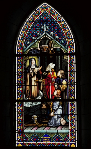 Verrière à personnages de la baie 5 : Communion mystique de sainte Thérèse d'Avila,