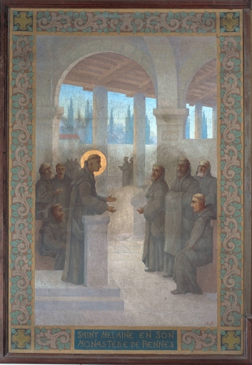 Ensemble de 7 tableaux : Vie de saint Melaine,