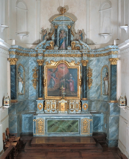 Ensemble du maître-autel : autel, tabernacle, retable, 2 degrés d'autel,