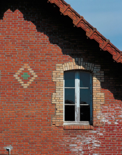 Détail d'architecture du pignon sud : décor de brique polychromeImmatriculation