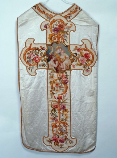 Ornement blanc 1 : chasuble, bourse de corporal, étole, voile de calice, manipule,