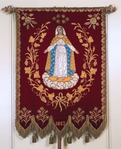 Bannière de procession paroissiale : saint Joseph, Immaculée Conception,