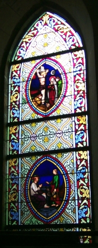 Verrière à personnages de la baie 17 : Crucifixion, Jésus et la Samaritaine,
