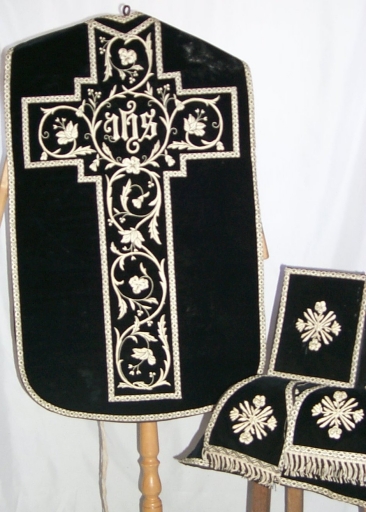 Ornement noir 2 : chasuble, bourse du corporal, étole, manipule, voile du calice,