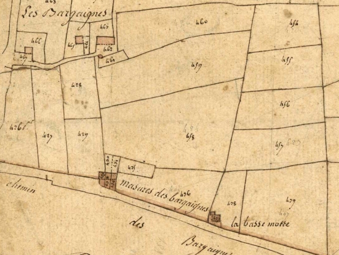 Le site des Bargaignes en 1826 sur le cadastre napoléonien ; parcelle 466Immatriculation
