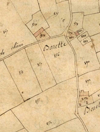 La ferme en 1826 sur le cadastre napoléonien ; parcelle 874Immatriculation