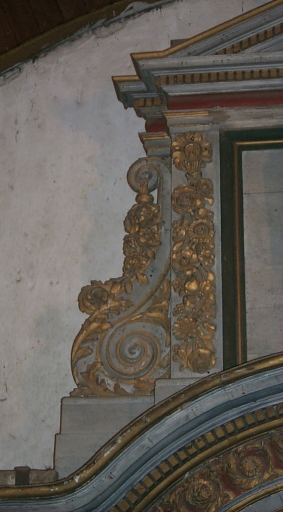 Décor latéral de la niche supérieure : volute et chute de fleursImmatriculation