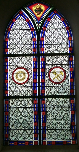 Verrière de la baie 3 : couronne d'épines, marteau et tenaillesImmatriculation