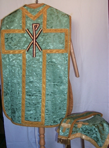 Ornement vert 1 : chasuble, étole, voile de calice,