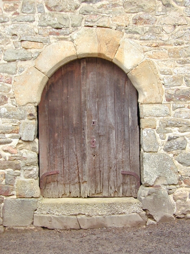 Détail : façade sud, porte en plein-cintre ; le sommier de droite servait certainement à aiguiser les outilsImmatriculation
