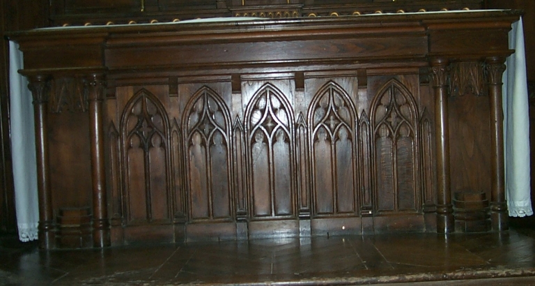 Ensemble de l'autel de la Vierge : autel, tabernacle, retable, gradin d'autel, degré d'autel,