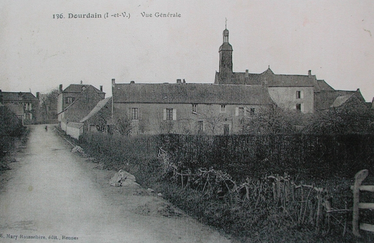 Carte postale : vue générale du bourg et façade sud du presbytère au début du siècleImmatriculation