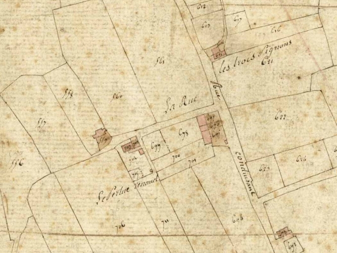 L'édifice sur le cadastre de 1826, parcelles 702, 703Immatriculation